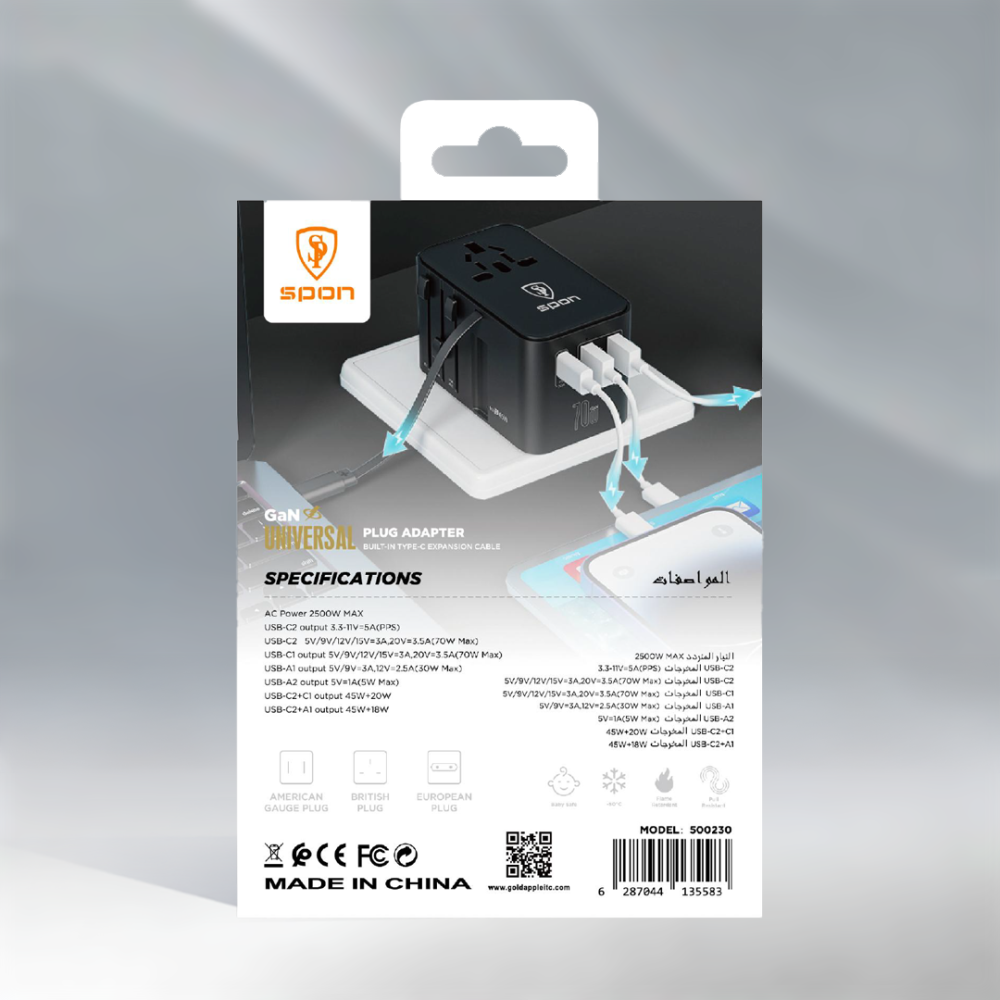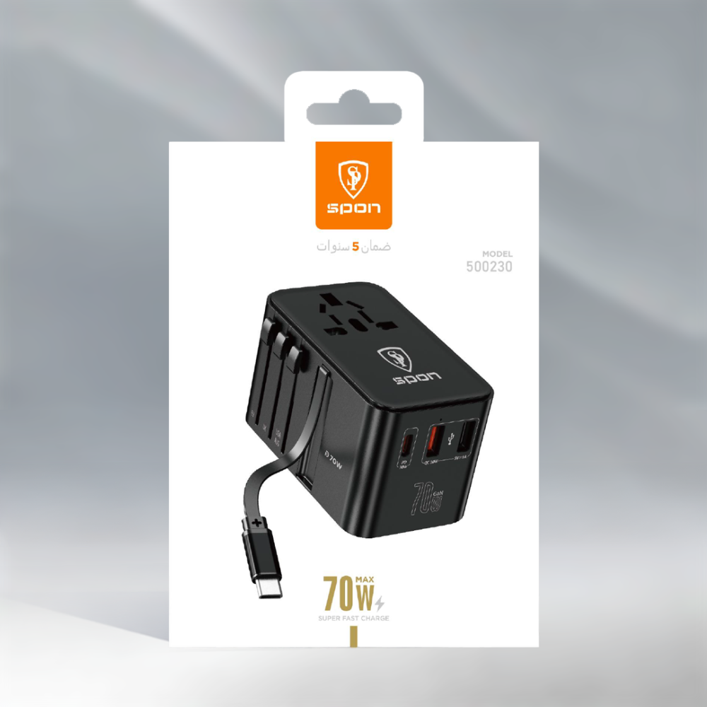 - تصميم عالمي: يأتي مع مقابس متعددة تدعم المقابس الأمريكية، البريطانية، والأوروبية، مما يجعله رفيقك المثالي في السفر حول العالم.